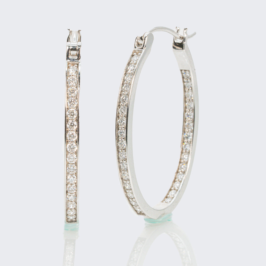 Experience the epitome of sophistication and luxury with our captivating 9-carat white gold and diamond hoop earrings, designed to elevate your style with unparalleled brilliance and glamour.